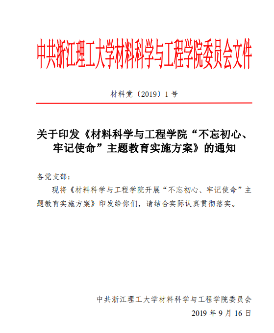 党建动态 当前位置: 体育博彩 > 党建思政 > 党建动态 > 正文 材料党〔2019〕1号-体育博彩 “不忘初心、牢记使命”主题教育实施方案 作者:时间:2019-09-17浏览次数: 附件【材料党〔2019〕1号-体育博彩 “不忘初心、牢记使命”主题教育实施方案.pdf】已下载次