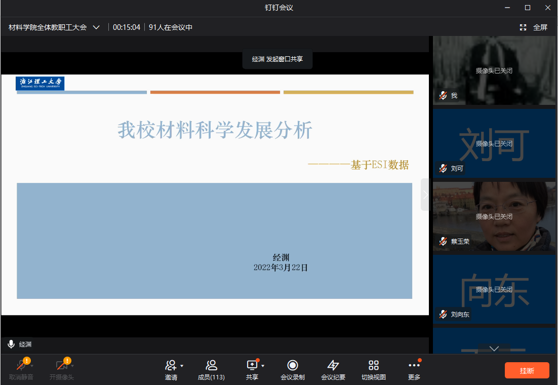 3月23日下午,材料学院召开党委理论学习中心组专题学习扩大会议,本次会议采取钉钉会议线上形式召开,学院党委理论学习中心组成员和全体教职工参加会议,会议由学院院长张先明主持。