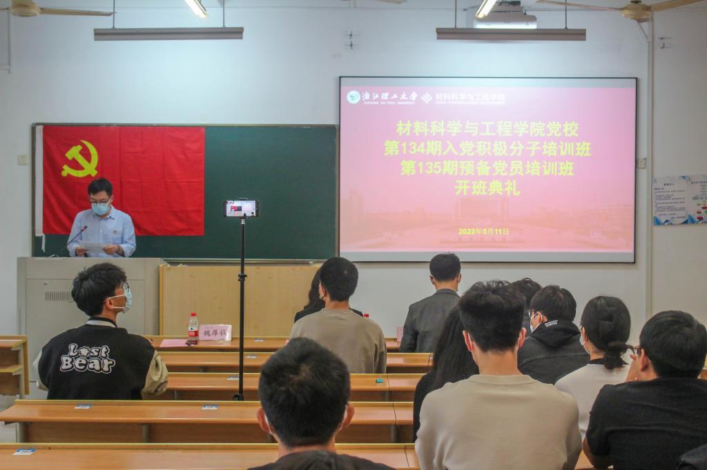 在2-S127教室举分党校入党积极分子培训班(总第134期)、预备党员培训班(总第135期)开班典礼暨“喜迎党的二十大 共筑材料强国梦”红色材俊文化节启动仪式。学院党委书记仰滢老师,学院党委副书记、纪委书记周照东老师,学院组织员魏厚钱老师以及180位新一批预备党员、入党积极分子学员们共同参加。活动通过线上线下相结合形式开展,开学典礼由组织员魏厚钱主持。