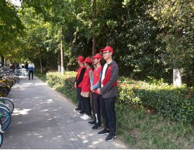 1021日材料学第二党支部党员以及班级积极分子参加学校小北门自行车摆放志愿者活动。