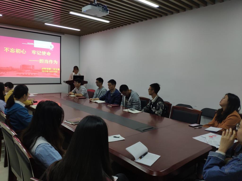 2019年10月16日,材料学第一党支部在24号楼313召开了本月的党日活动,活动的主题为“《不忘初心,牢记使命》——担当作为”,本次主题党日活动主要以初心和故事为话题,同志们分享了自己知道的初心故事和对初心使命的理解;接下来每位同志都针对担当和作为提出了自己的理解和看法。以下是大家的发言。
