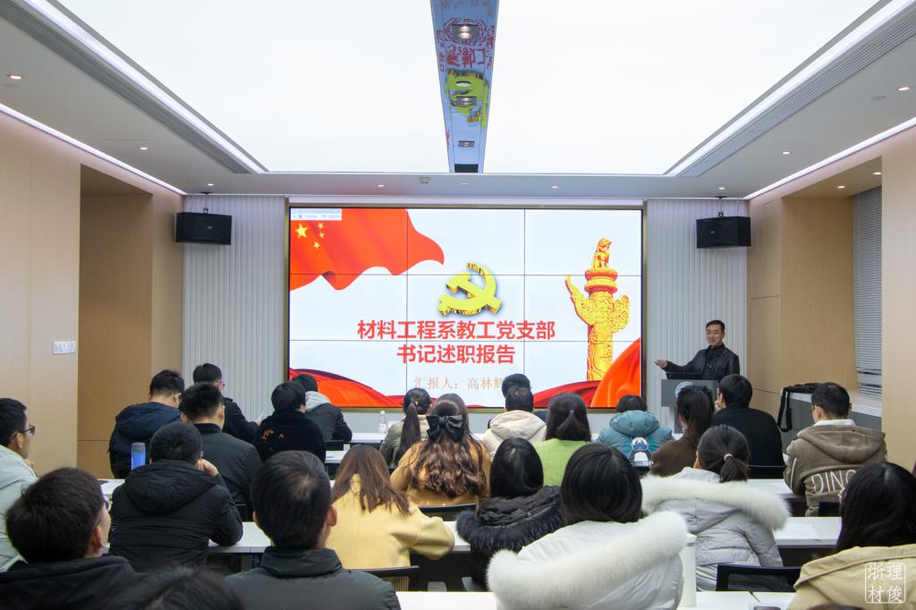 高分子材料系教工党支部和材料工程系教工党支部分别从支部基本工作情况、存在问题及未来展望等三方面进行汇报,教工党支部坚持以党支部标准化建设和课程思政改革为重点,加强基层党组织建设,充分发挥党支部的战斗堡垒作用,为学院、学科、专业发展提供坚强的政治保障,从夯实政治根基、规范组织管理、助力学科发展、强化政治引领四个方面开展党建与思政工作,成效显著。同时也分析了目前仍存在对党建业务结合不够、党建工作创新性不足等问题,今后将紧紧围绕“贯彻”与“创新”进行切实整改,创新实践活动方式和内容,强化支部素质建设和提升支部活力。