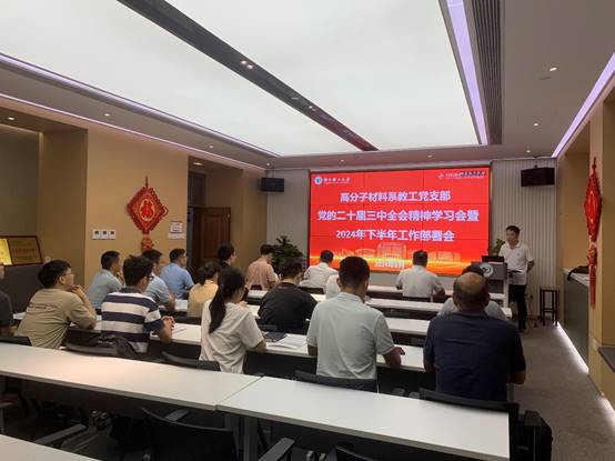 为深入传达党的二十届三中全会及浙江省委十五届五次全会精神,扎实推进各项改革任务向纵深发展,切实将会议精神转化为推动浙江高质量发展的强大动力,高分子材料党支部于8月24日下午在24号楼415报告厅召开党委理论学习会议。