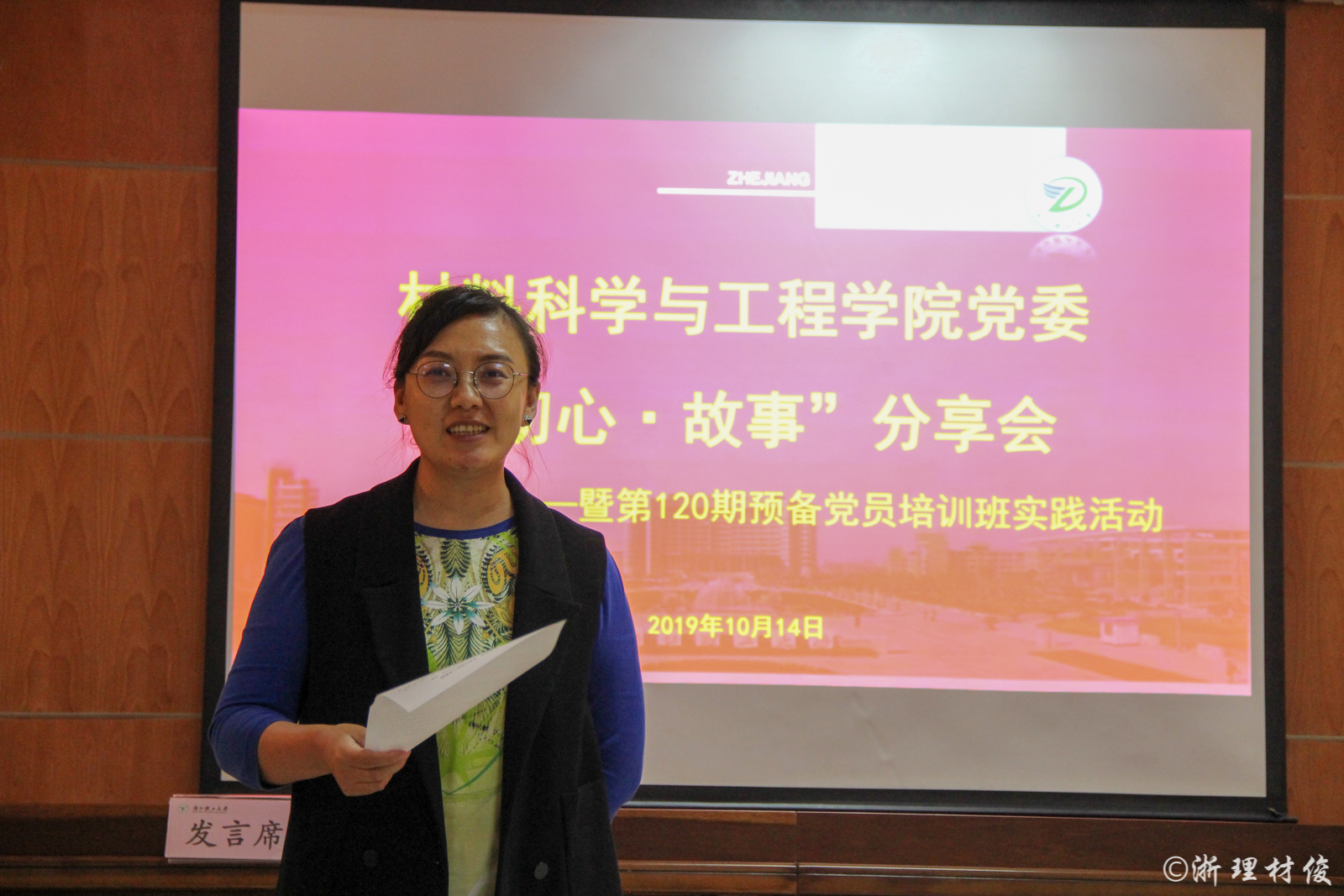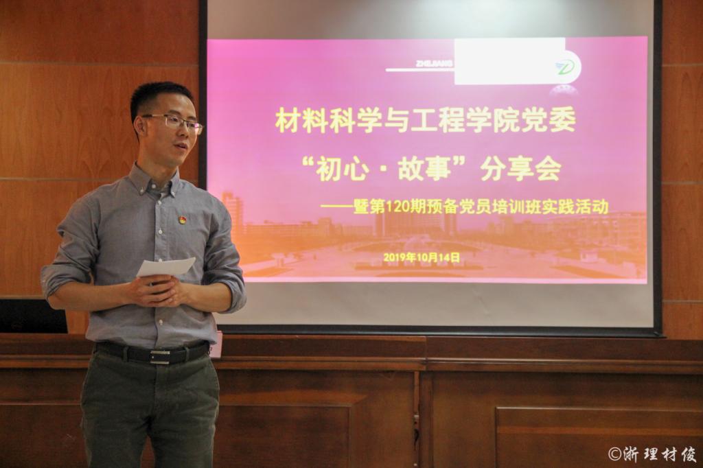 分享会上,各支部党员代表结合个人经历和理解分享自己“初心•故事”,积极诠释自己作为一名党员的初心与使命。本科生党员代表从小事做起,积极投身科研,参加志愿服务,参与支教工作,发挥党员先锋模范的作用,这种勇于承担责任不求回报自立自强的精神,值得传承和发扬研究生党员代表通过讲述自己祖辈的故事,他们为实现更大的价值而放弃更优越的条件,充分体现了老一辈党员的初心和情怀,时刻影响着我们这代年轻的党员。博士研究生党员代表重温《建国大业》感慨和感受革命事业的艰苦与严酷,通过对比新中成立后的70周年,看到了中国人民真正站了起来,国家也变得更加强大了但革命尚未成功,我们必须不忘初心,牢记使命,开创更加辉煌的明天高分子材料系教工支部代表张明老师讲述自己争做人民好老师的初心从孩童时的游戏中做老师小学代课,再到如今的优秀人民教师、优秀共产党员她始终不忘教育初心,一步一步实现自己的教师梦。
