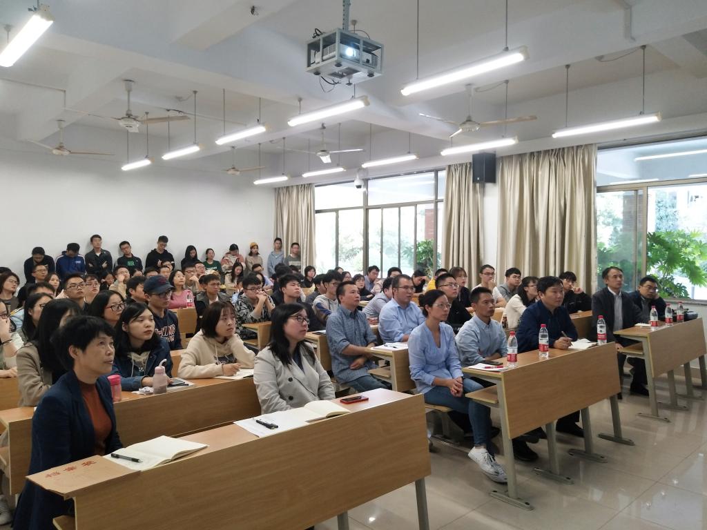 随教授首先指出天然可再生高分子材料来源广泛,可再生,可降解,易于改性,对其进行深加工以提供高附加值产品具有重要的经济和社会意义。接着从纤维素衍生物再生纤维素、纳米纤维素及纤维素织物整理等方面,总结了自己的研究成果隋教授的研究进一步拓展了材料在纺织印染、复合材料、生物医药、污染治理、食品、化妆品等领域的应用具有较高的学术价值。报告会座无虚席,教授与师生进行了充分互动交流与探讨,现场学术气氛热烈