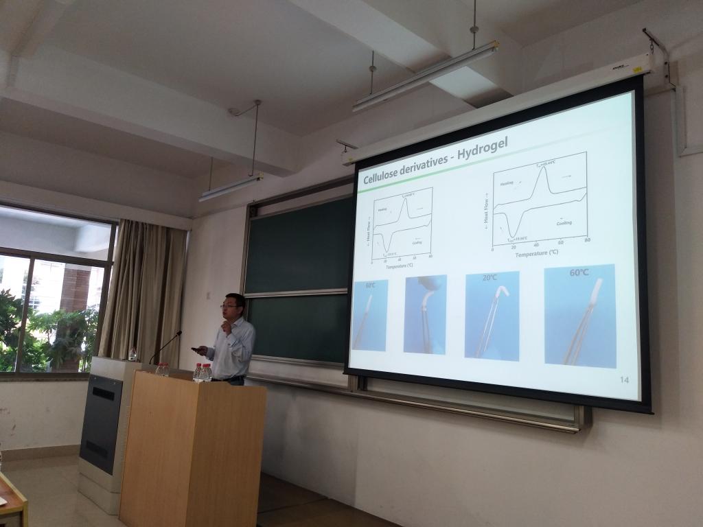 日,东华大学博士生导师隋晓锋教授应邀于2019年11月1日访问我院,并以“天然高分子基功能材料”为题为我院师生讲授学术报告。报告张先明副院长主持,材料学院师生参与。