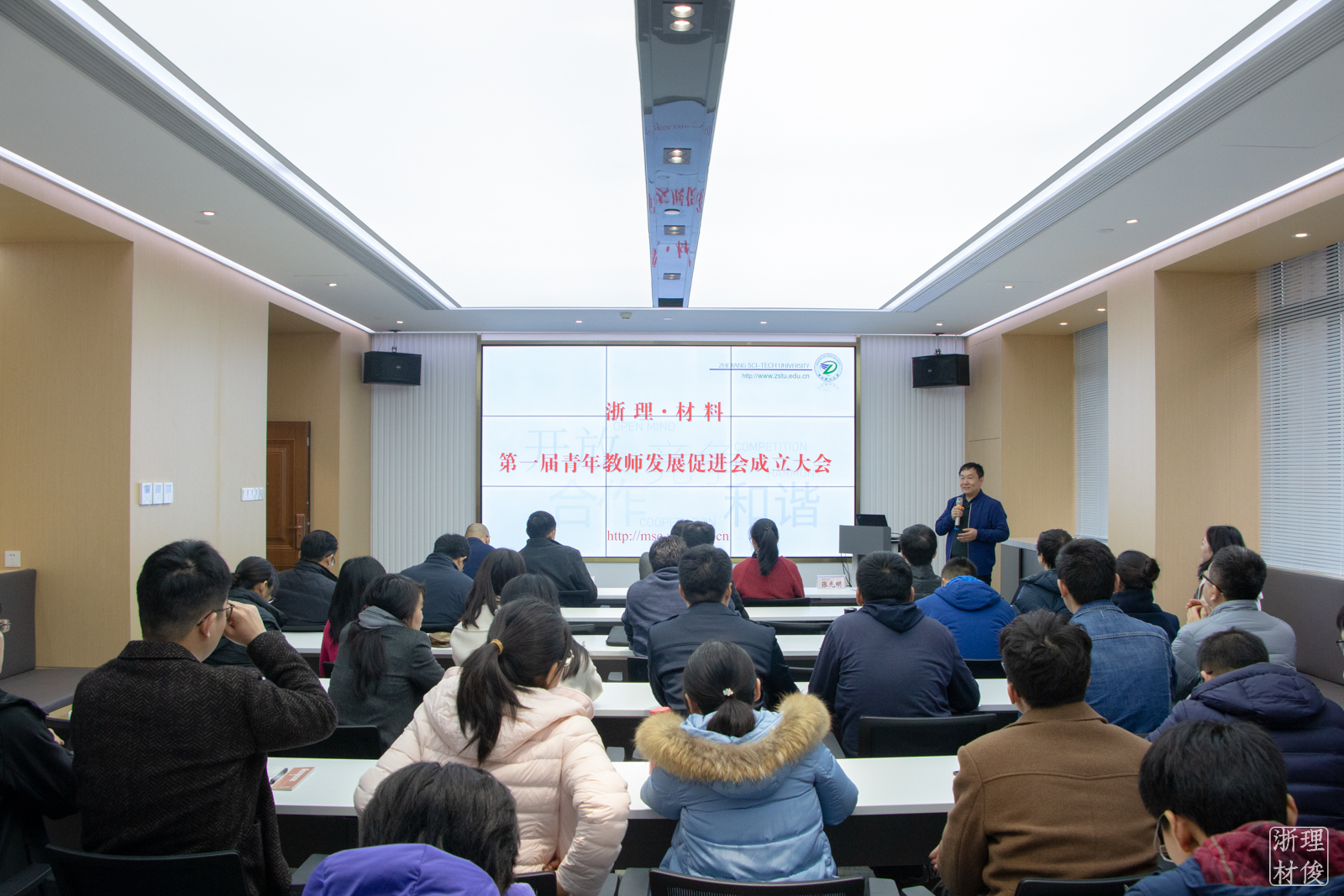 青年教师发展促进会成立大会在24号楼415报告厅举行。校党委委员、材料学院院长姚菊明,校党委宣传部、党委教师工作部副部长吕旻,校教师教学发展中心主任郭江峰,校青促会理事长戚栋明以及材料学院党政班子成员和学院全体青年教师出席会议。会议由材料学院副院长张先明主持。