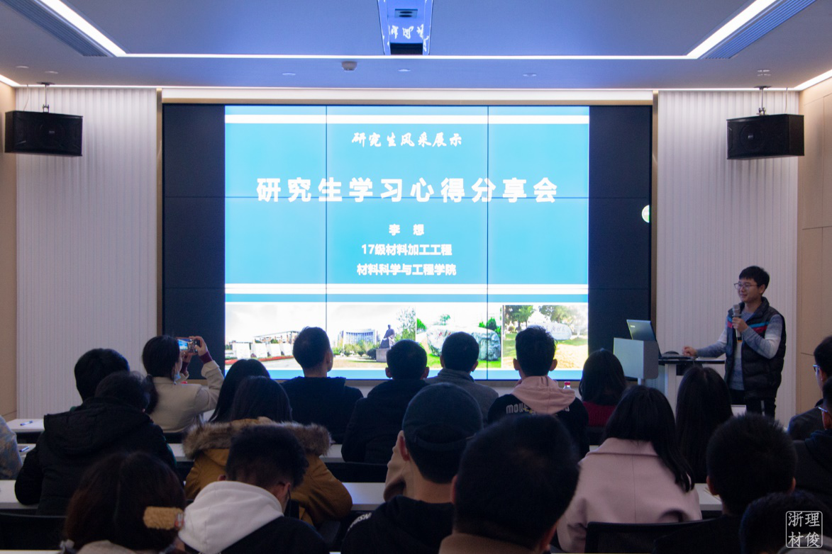 -科研与创新中心主办的“研途材俊之优研分享汇”活动于2019年12月5日晚在24号楼415报告厅举行。活动邀请到四位实践丰富、科研卓越的优秀分享者,他们分别是17级硕士研究生李想、19级博士研究生顾艳和齐晓明以及17级硕士研究生张永和。辅导员魏莉莉老师和近100名硕士研究生参加了本次交流会。