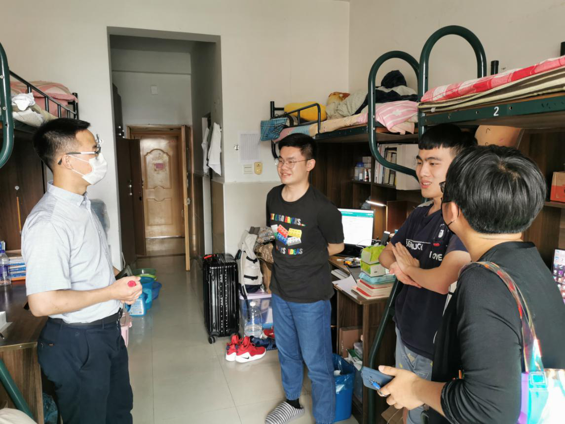5月8日,学院学生线全体人员走访返校学生寝室,关注同学们返校后在学习、生活方面的状态,了解返校后是否存在相关困难,重点关注了解毕业班同学们在就业、考研复试等方面存在的问题和疑惑,学院将针对同学们提出的困难研究相关解决方案。确保在保证广大同学们身心健康的同时,学习、科研、就业等进程有序推进不掉队。