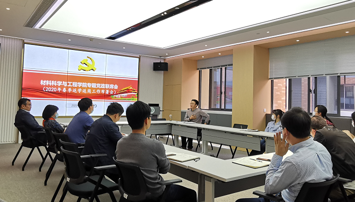 同时,材料学院于4月30日召开线上班主任视频会议、5月6日召开学院教工大会,介绍部署了我院研究生和本科生返校情况和相关工作要求,希望研究生导师、本科班主任等全体教职工积极主动配合学校学院的返校工作,通过主题班会、课堂教学等形式提醒学生们养成每日健康打卡习惯,注意疫情期间自身身心安全,全面了解学生的思想动态和返校复学情况,确保学院各项工作有序开展。