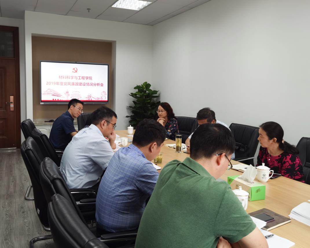 召开2019年度党风廉政建设情况分析会。副校长陈文华,校纪委委员严丹萍以及材料学院班子成员参加会议。会议由材料学院党委书记傅雅琴主持。