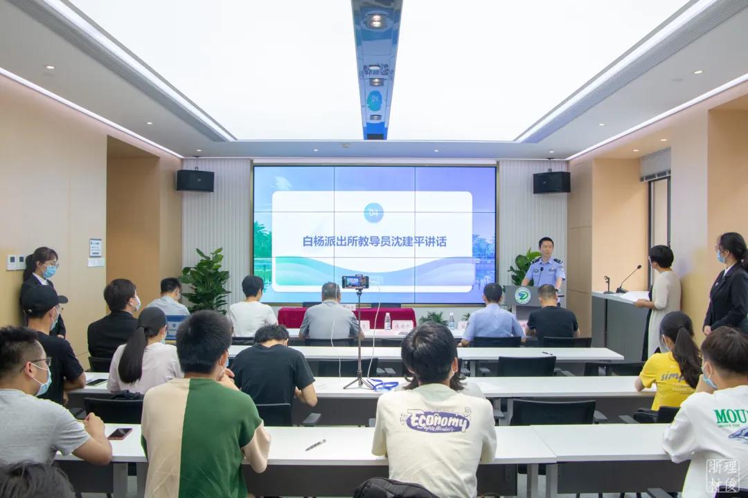 和白杨派出所共同制定的防诈骗合作方案,介绍了学院成立的“大白杨警探分社”简况,将配合白杨派出所开展一系列防诈骗宣传教育活动;并在白杨派出所的帮助下,“大白杨警探分社”会派出成员,深入下沙部分企业进行联动宣传,共同治理。