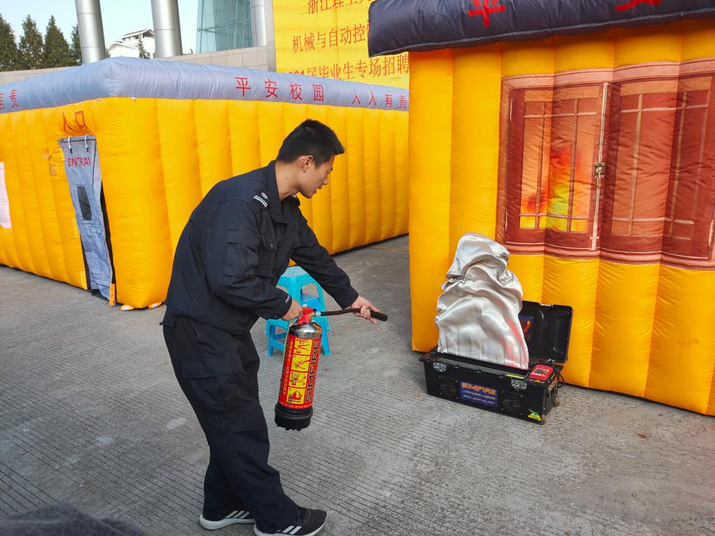 模拟灭火演练活动,指导教练给同学们实地示范了如何使用灭火器,以及模拟了在火中和烟雾中如何逃生,是一次十分有价值的培训,同学们都表示培训中学会了一项技能,受用终生。