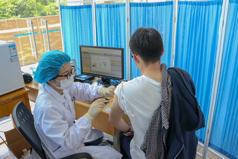 中国是世界上疫情防控做的最好国家,但是输入病例时有发生。对于高校来说,在推动“培养国际人才和人才培养国际化”大背景下,新冠病毒感染风险依然存在。疫苗接种可以预防发病、预防重症,阻断疾病流行,让大多数人的健康得到保证,因此疫苗接种利己、利人、利于社会。今天按照医生要求进行接种,没有感觉什么不适。