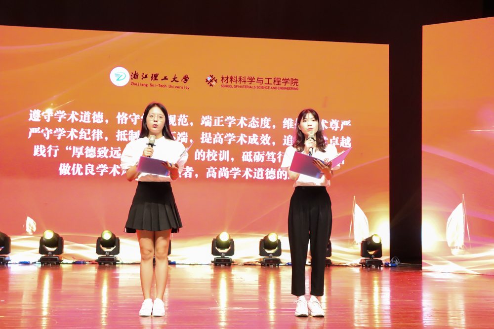 典礼最后,毕业生代表王鑫、胡欣蔓带领2021届全体毕业生学术宣誓。