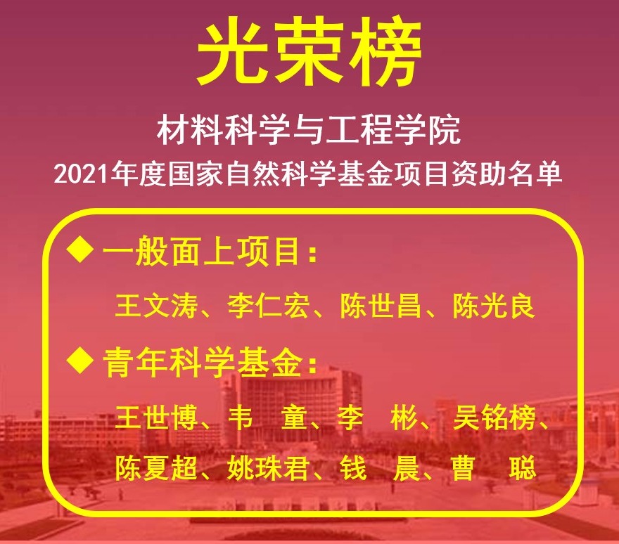 近日,国家自然科学基金委员会公布了2021年度国家自然科学基金评审结果及填报审批项目计划书的通知。我院共有12项国家自然科学基金项目获得立项资助,同比增长50%,立项资助率达到32.43%,资助率位列全校第一。其中,一般面上项目4项,青年科学基金项目8项,共获直接经费资助428万元。