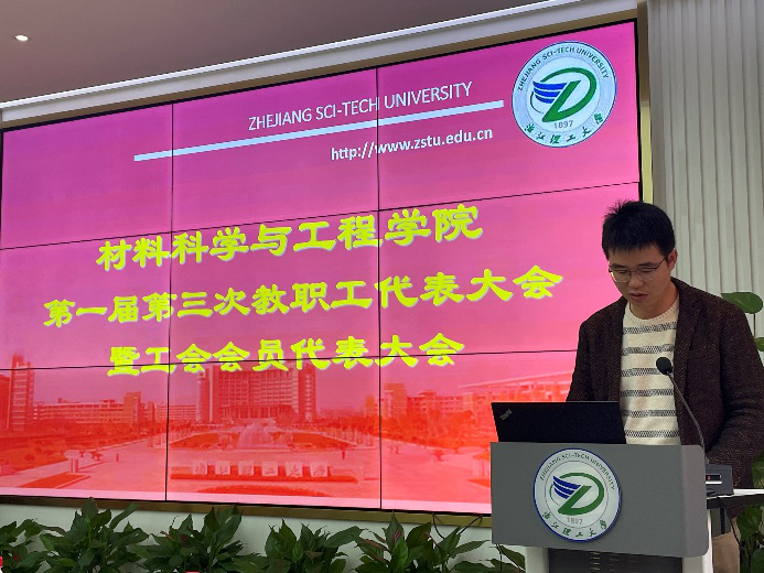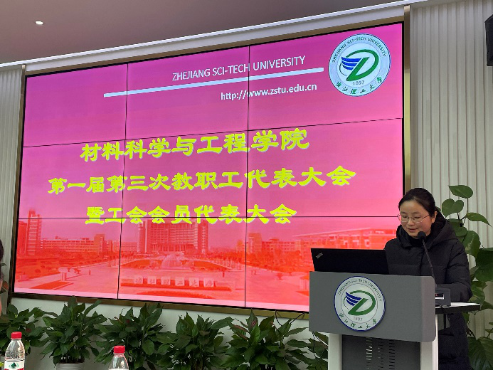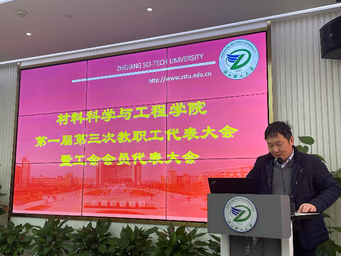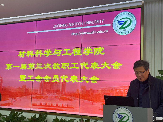 在双代会正式开始之前,首先通过预备会确定了双代会的主要议程和流程,随后进行正式会议。会上,陈文华副校长对材料学院2021年在学科建设、科学研究、师资队伍建设、教学科研平台建设等方面取得的成绩表示肯定,对学院在“十四五”开局之年取得的成绩表示祝贺,同时也对新的一年各方面工作提出了希望和要求,勉励全体教职工团结一致、努力奋斗。张先明院长以“凝心聚力育人才,务实奋进谋发展”为主题做了学院的院长工作报告,具体通报了过去一年学院在人才培养、科学研究、社会服务、国际化办学、人才队伍建设等多个方面取得的成绩,并描绘了新的一年学院的发展愿景。江国华副院长做了学院的院务公开工作报告,就学院奖励性绩效和绩效考核奖分配方案做了通报。工会委员纪律律老师做了分工会工作报告,通报了2021年度分工会的各项工作。与会教职工代表们认真听取了各项报告,并审议通过了大会决议。随后,张姗姗老师宣读了大会决议。