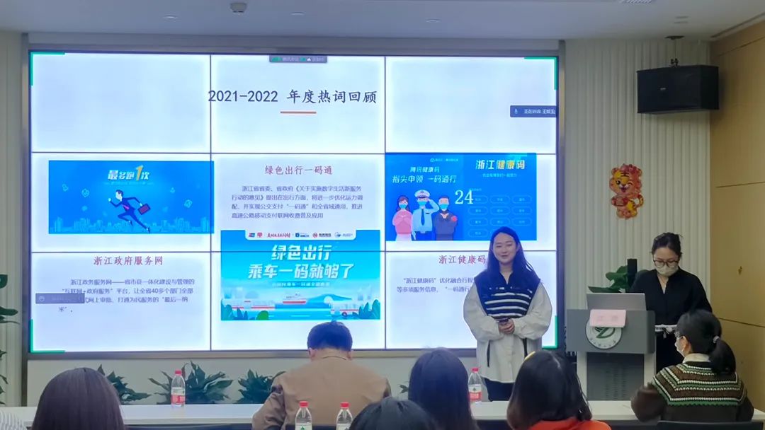 来自国际教育学院的汪珊老师从“年度热词”解码浙江共同富裕新征程,“建党百年”“乡村振兴”“疫苗接种”“小康”等热词,提炼出中国视野下的社会变迁和世界万象,“强国有我”“YYDS”传递了向上向善的时代风潮。网友热议“浙江农村有多豪华”:宁波奉化滕头村评获中国十佳自然村,以浙江之窗展现中国之治;当千年古镇乌镇拥抱互联网,数字赋能,助力浙江发展新征程;景宁畲族自治区呼应“山海协作八大行动计划”,以人为本,先行先试。人们从热词中感受的不仅是当代社会走向繁荣进步的脚步,更能读到逆行者奋斗者力担千钧的责任担当,这些具有强大凝聚力向心力的热词,都是传承红色基因的精神联结,彰显着中国人的精气神。