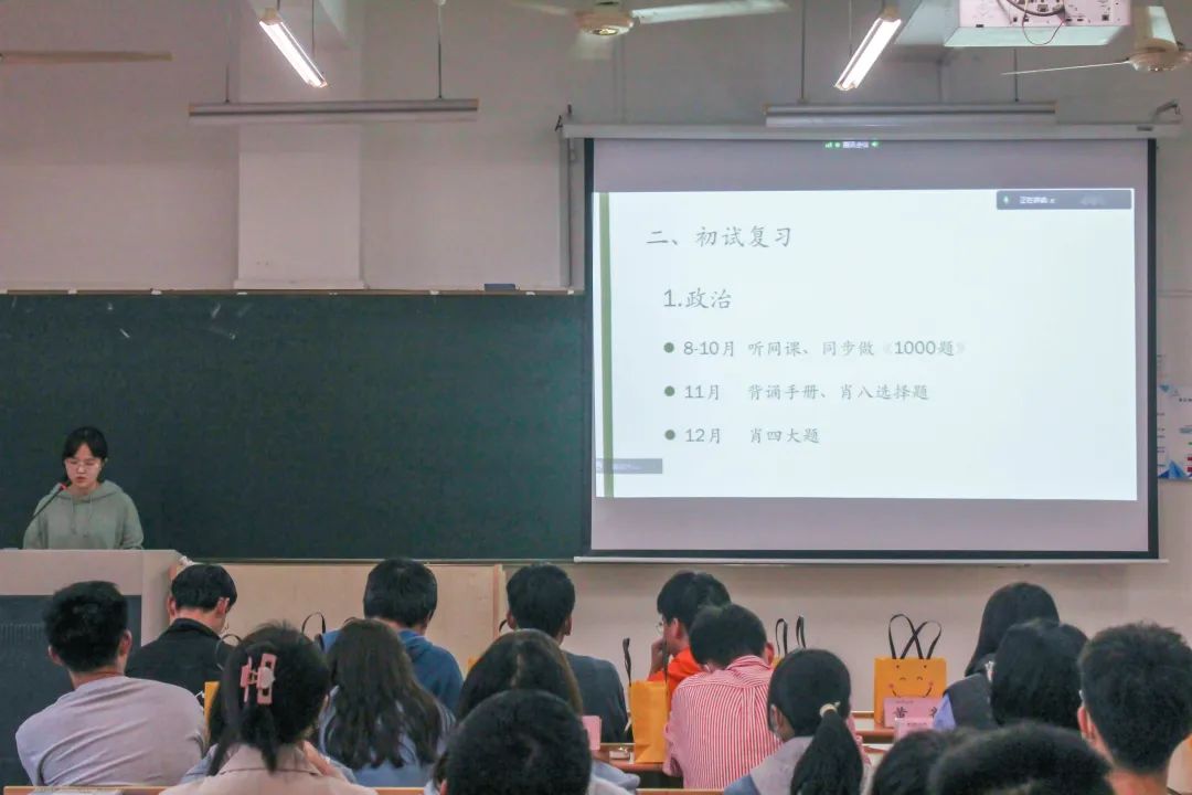 二是有氛围,有环境:学院设立考研教室,考研教室中大家互相督促学习,上岸学长学姐为大家经验分享,督促推动大家备战考研,希望同学们在良好的氛围中互相带动,结合自身实际制定符合自身的学习计划。