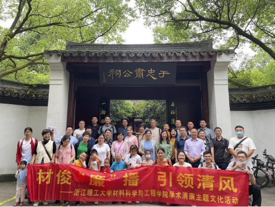 6月12日,材料学院组织二十余名教工党员赴杭州市于谦祠开展党风廉政专题教育。于谦祠是杭州市爱国主义教育基地、杭州市廉政教育基地,大家满怀崇敬参观了馆内史料和文物,被于谦刚正不阿、勤政为民、鞠躬尽瘁、清正廉洁的气节所感染,党员同志们在参观学习中得到了精神洗礼,进一步提升了教工党员的政治修养,筑牢了拒腐防变的底线思维。