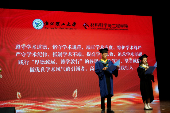 学院始终高度重视毕业生的廉政教育和学术诚信教育,将学术诚信教育融入毕业生离校教育中已成为学院品牌活动。6月15日,在2022届毕业典礼上,全体毕业生进行了学术诚信教育。毕业生代表欧阳兆锋、温小东带领2022届全体毕业生进行学术宣誓。诚信是为人之本,通过宣誓,希望毕业生们不要忘记无论何时,要做到以诚为本、诚实守信。