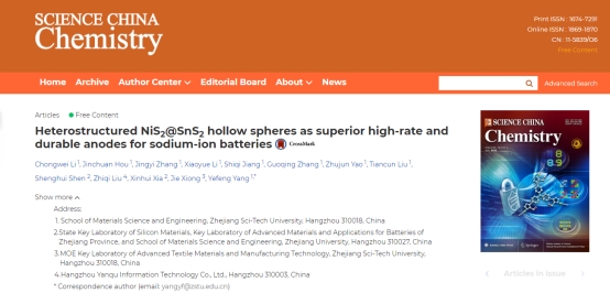 近日,我院杨叶锋副教授课题组在钠离子电池负极材料调控制备和器件性能研究方面取得新进展,在材料和化学领域国际高水平期刊《Science China Chemistry》(影响因子9.4)等上发表了系列文章,相关论文作为优秀研究成果被中国科学杂志社官方微信公众号推介报道。