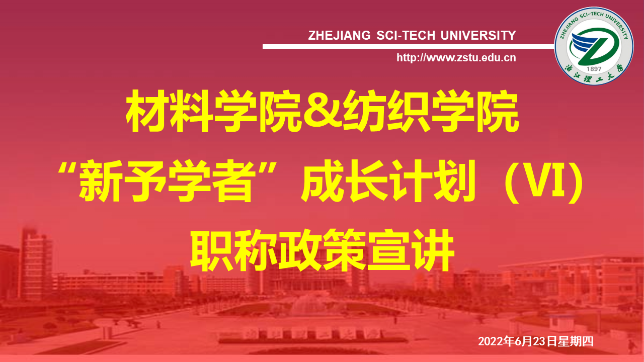 6月22日下午,材料学院联合纺织学院在24号楼415会议室举办“新予学者”成长计划(Ⅵ)——职称政策宣讲活动。