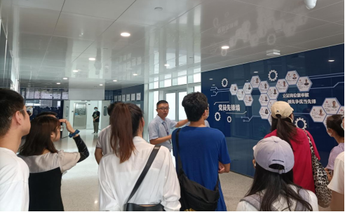 材料学院一行首先来到天通产业基地——天通瑞宏科技有限公司,参观了生产厂房,沈瞿欢向大家介绍了流片、压片制备工艺、企业生产情况和公司文化;曹佳辉校友现身说法,分享了个人在企业的成长经历,鼓励在场的同学们努力学习,刻苦钻研;董事长沈建松结合国家战略需求和自身创业经历,表达了企业攻克“卡脖子”技术的决心,也鼓励同学们增强专业认知,了解企业生产管理模式,提前树立成长目标。