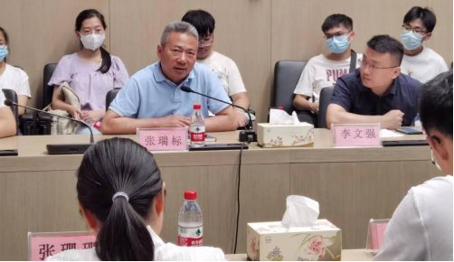 参观结束后,双方在会议室进行了交流座谈,会议由李文强主持。2021年“天通创新创业奖学金”获得者董露露代表获奖学生对企业设立奖学金资助表示感谢,分享了个人成长经历和体会。