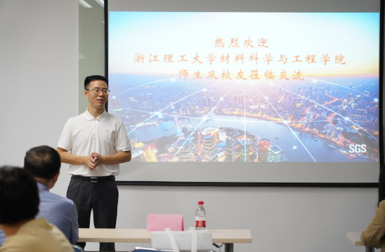 为喜迎党的二十大,迎接建校125周年,加强学院与校友的联系,进一步促进学院和校友企业产学研合作,实现共赢发展。9月30日上午,材料学院周照东副书记带队赴校友企业SGS杭州分公司走访调研,开展“材·之家”系列材俊校友论坛暨材料学院校友理事会座谈会。SGS中国纺织品及鞋类服务部副总监、材料学院杭州校友会会长苏健,老爸测评首席质量官、材料学院杭州校友会秘书长白利强,SGS杭州分公司经理梁超,人力资源部经理王晓丽, SGS杭州分公司员工、材料学院校友徐云珠和卓丽菊,材料学院党委副书记周照东,学工办主任张姗姗,辅导员鲁宏浩,以及学院16位同学代表参加本次活动。活动由苏健主持。