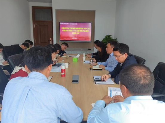 学院院长张先明表示,党的二十大报告鼓舞人心、催人奋进。习近平总书记在报告中指出,我国一些关键核心技术实现突破,战略性新兴产业发展壮大,一系列领域取得重大成果,我国进入创新型国家行列。作为一名高校教师和科研工作者,深感使命在心、责任在肩,我们要始终坚守为党育人、为国育才的初心,坚持真抓实干、求真务实的作风,在教学科研工作上“只争朝夕”,在立德树人上润己泽人,为推动高质量发展和创新型国家建设贡献积极的力量。他表示,要围绕建设研究型学院的发展目标,坚持系管教学,所管科研,以人才强国战略为导向,明确人才培养目标,进一步加强材料学院高水平人才队伍建设和科研平台建设。