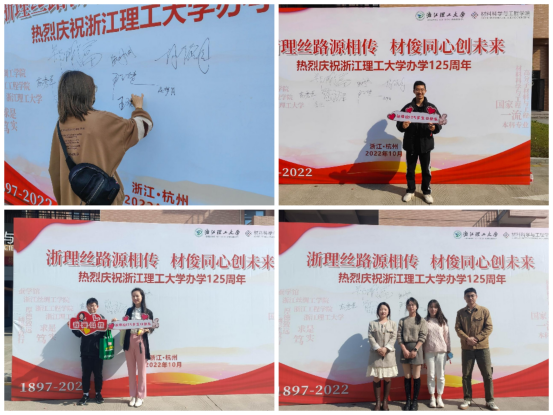 ——24号楼进行签到、领取校友定制礼品,并在学院楼的主题喷绘前合影,留下庆祝浙理125周年喜悦的脸庞。