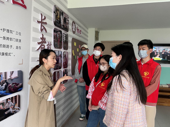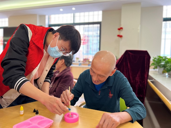 春日阳光映衬下,在干净整洁的活动室内,青年学子和老人们一起做动感的手部健身操,随后与老人们围坐桌前,大学生们化身“中华小曲库”,为老人们献唱,他们与老人们合唱《歌唱祖国》《明天会更好》等歌曲,老人们一边打节奏,一边跟唱经典红歌,优美的歌声在大厅里回荡。“好久都没有和这么多年轻人在一起热闹过了,感谢他们,希望他们今后能常来。”一位老人说到。
