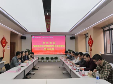 调研交流。材料学院党委书记仰滢、院长张先明、副院长江国华、高分子材料系系主任张明、综合办公室主任魏莉莉等出席了会议。