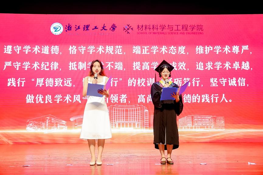 毕业生代表陈温贤、刘鑫带领2022届全体毕业生学术宣誓。