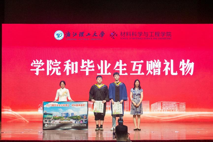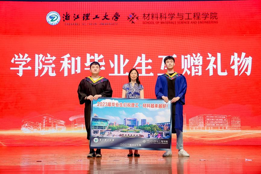 走心又暖心,永存师生情,学院党委书记仰滢和毕业生代表互赠毕业礼物。