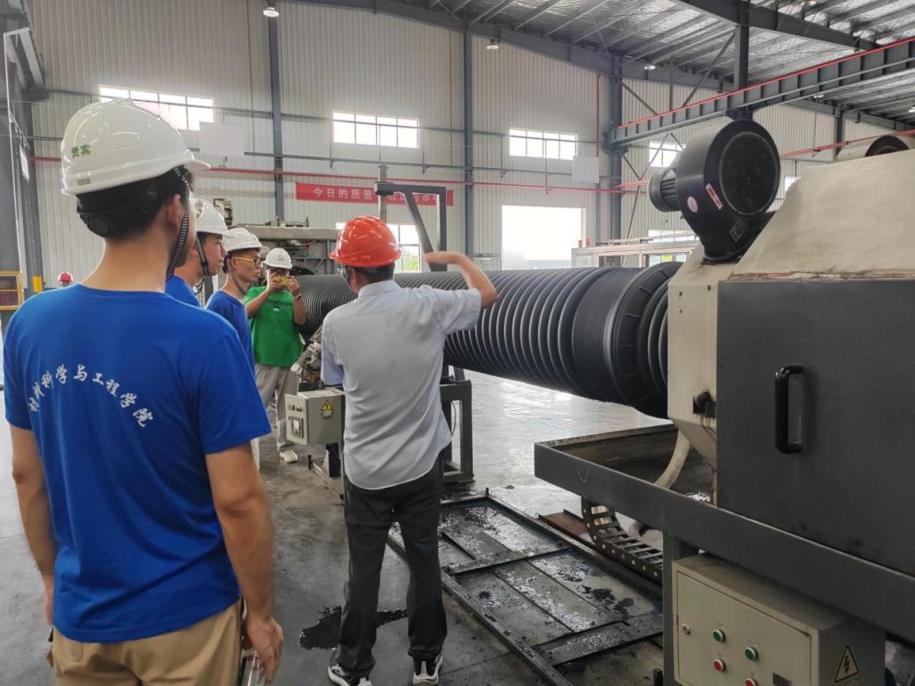 在浙江中财管道衍生产品有限公司,研发中心经理潘力群、人事部靳伟热情接待周照东一行。学院师生参观了企业产品陈列室、企业车间及生产线,深入了解中财管道产品应用领域。随后,双方围绕人才招聘、校企合作等方面展开座谈交流。潘力群和靳伟结合自己的工作经历,就大学生毕业后如何快速适应职场、在大学期间应该多培养什么能力等进行了解答。材料学子们积极提问,主动探究,对于材料领域产业有了更深入的了解。