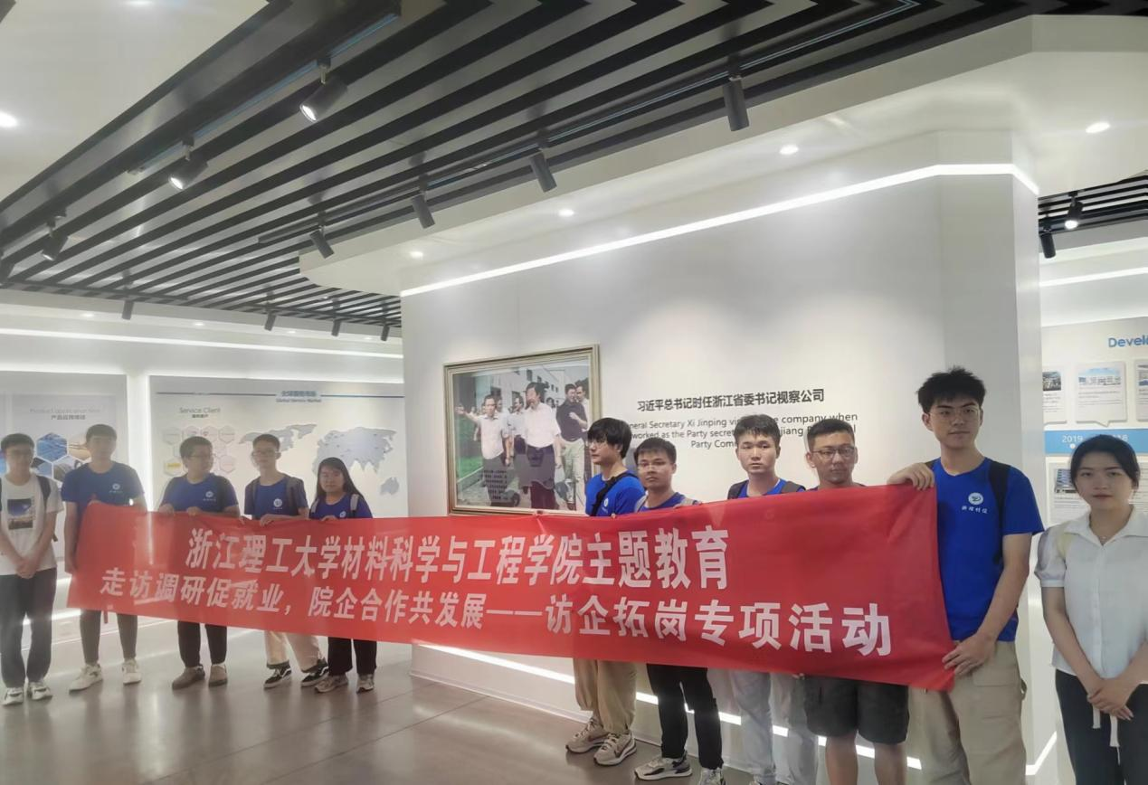 为认真贯彻落实教育部访企拓岗促就业专项行动的部署要求,拓宽就业需求,加强校企地深度融合,促进协同育人。7月20日,在衢州市人社局就业中心、衢州市衢江区人社局就业中心的牵头带领下,材料学院党委副书记周照东带领学院就业辅导员王依琳、高扬及学生代表10余人赴衢州开展访企拓岗促就业专项行动,先后走访浙江圣效化学品有限公司、仙鹤股份有限公司和浙江中财管道衍生产品有限公司。