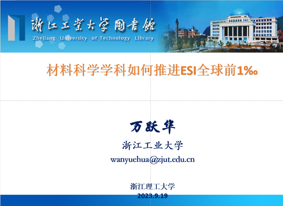 随后,浙江工业大学万跃华教授应邀做题为《材料科学学科如何推进ESI全球前1‰》专题报告,他用丰富的例证和详实的理论,从ESI论文评价指标与ESI学科分类,体育博彩