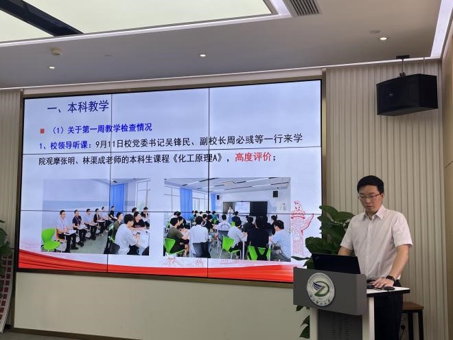 院长张先明首先传达了校长陈文兴在2023年新学期工作部署会上的讲话精神并介绍了学院的新教师,随后进行了近期学院重点工作部署。
