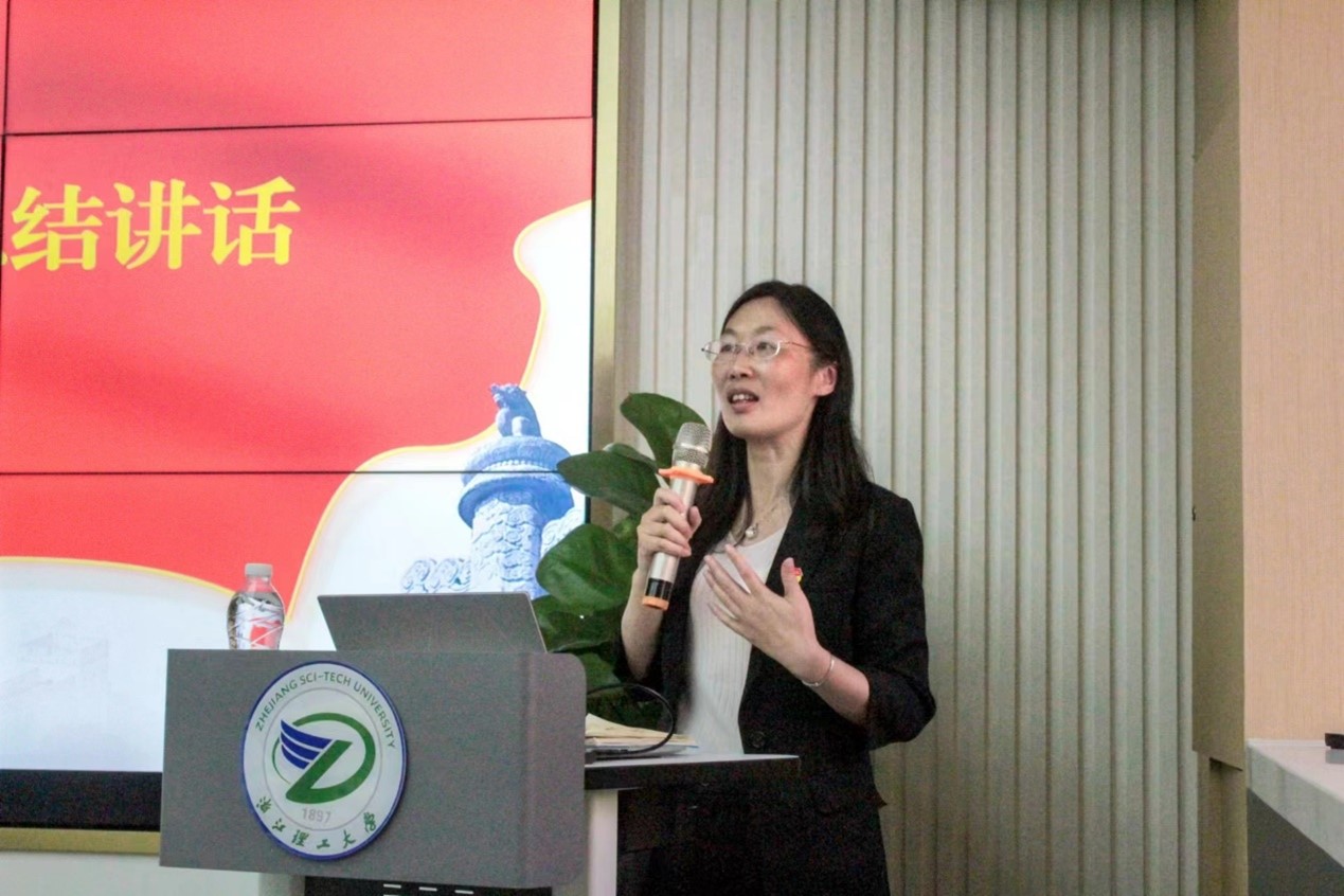 学院党委书记仰滢作总结讲话。她首先表达了三点感谢:感谢全院教职工对党建“双创”工作的大力支持,感谢学校党委组织部对于学院工作的支持,感谢郑洁老师今天给学院传经送宝。同时也对学院党建“双创”工作提出三个要求:第一是各个支部要进一步提高政治站位,锚定目标,明确任务,高质量通过验收工作;第二是要积极筹备全国高校党建“双创”的申报工作;第三是希望更多的党支部能在接下来第四批全省高校党建“双创”工作中能有所推进。