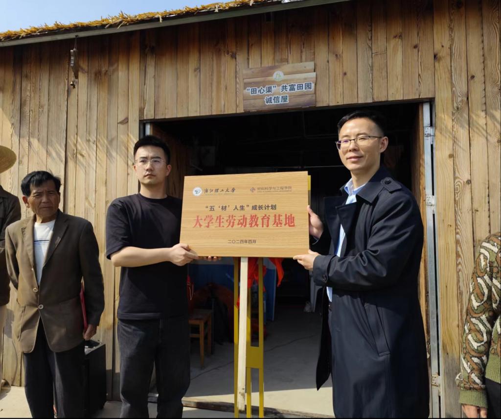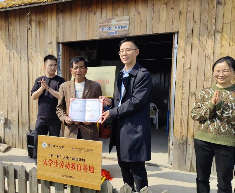 “五'材’人生”成长计划大学生劳动教育基地和大学生社区计划实践基地揭牌。随后,材料学院聘任河庄街道农民代表王国相先生为学院劳动教育指导员,为后期的学院劳动教育、劳动实践提供有力的指导和帮助。