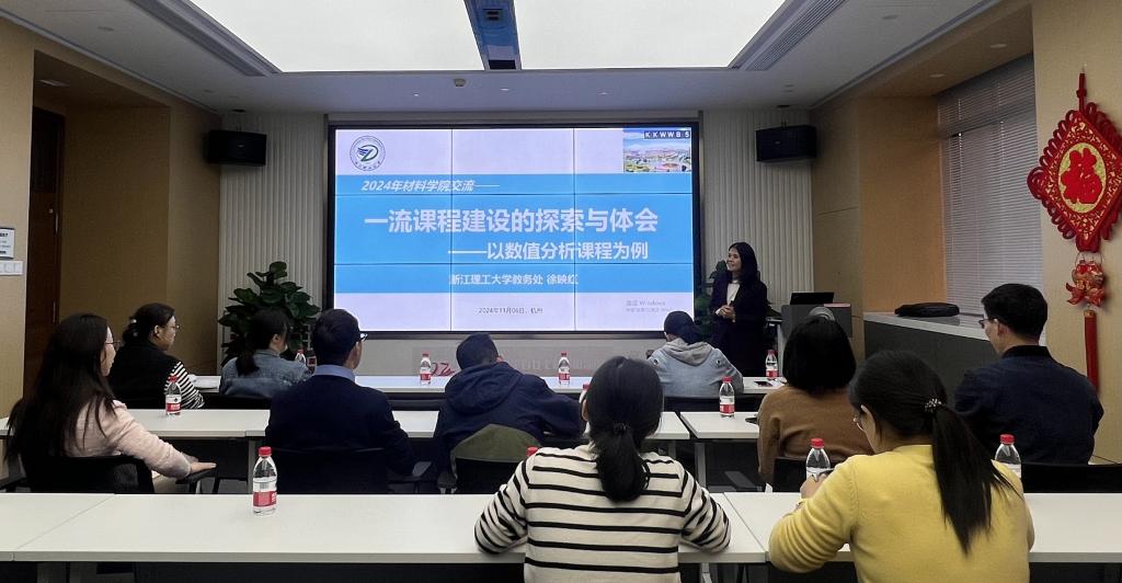 2024年11月6日下午,我院在24号楼415报告厅举办题为《一流课程建设的探索与体会——以数值分析课程为例》的教学技能提升讲座。本次讲座邀请了教务处副处长徐映红主讲。学院副院长杨叶锋主持会议。各系主任以及十余位青年教师一同参加讲座交流。
