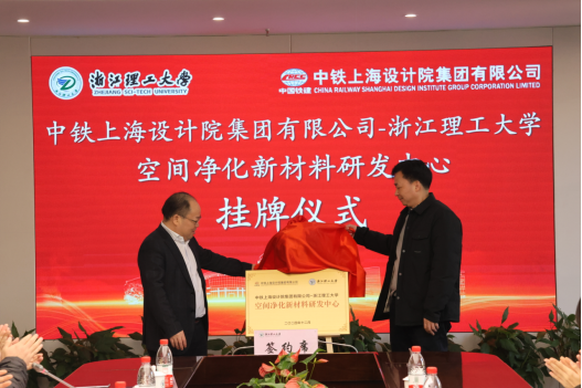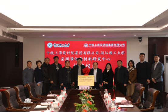 与中铁上海设计院集团有限公司举行合作共建空间净化新材料研发中心签约仪式。副校长陈爱喜出席会议。