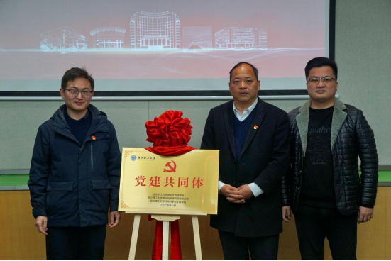嵊州创新研究院办公室主任竺帅彬共同签订《校企地党建共同体建设协议书》,并为党建共同体进行揭牌。