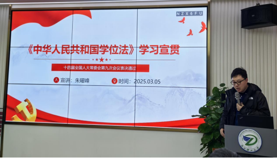 在24号楼415会议室组织全体教师开展《学位法》专题学习活动。