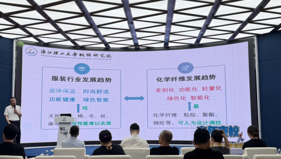 副教授万军民以《化学纤维材料发展现状及趋势漫谈》为主题,围绕化学纤维材料发展现状、未来发展趋势以及化学纤维如何仿生改性等方面带来了一场精彩的科普盛宴,用生动的案例和通俗易懂的语言,深入浅出地展示了纺织新材料科技的魅力,激发大家对纺织新材料科技的探寻,现场不时爆发出热烈的掌声。