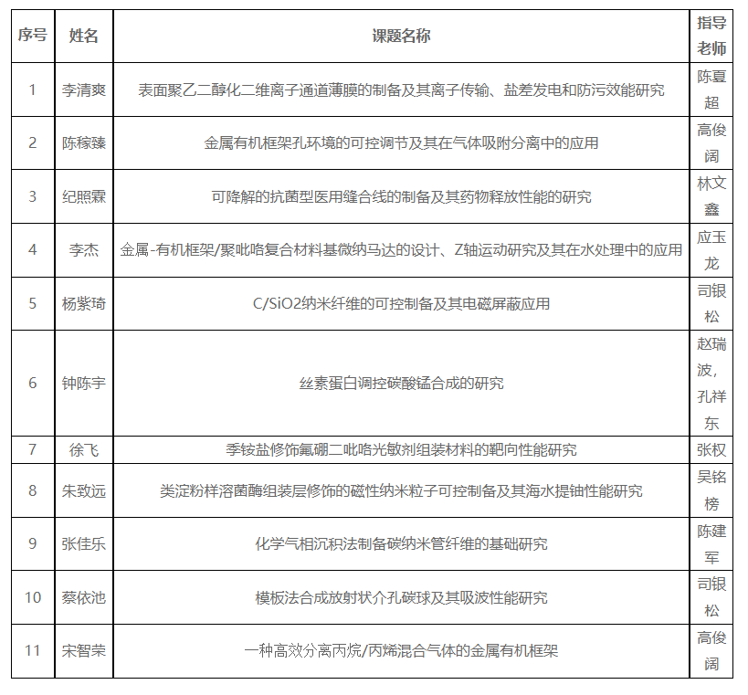 2021年材料科学与工程专业本科生创新实践开放基金立项项目