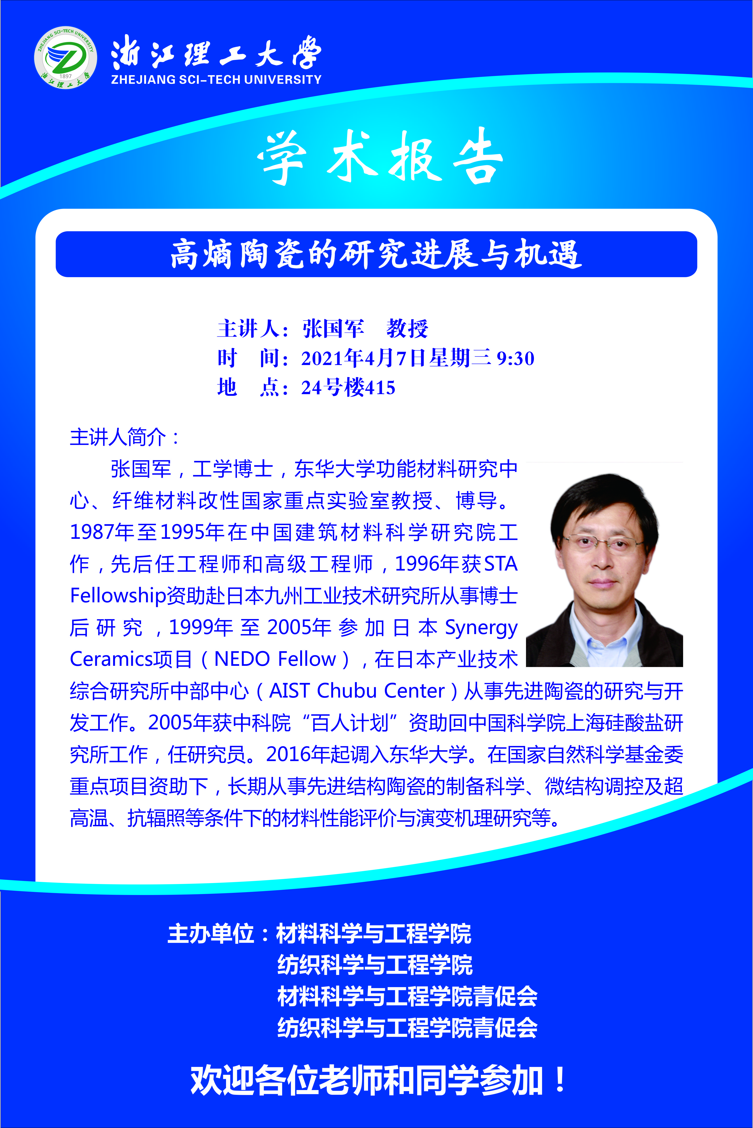 学术讲座【19】:高熵陶瓷的研究进展与机遇