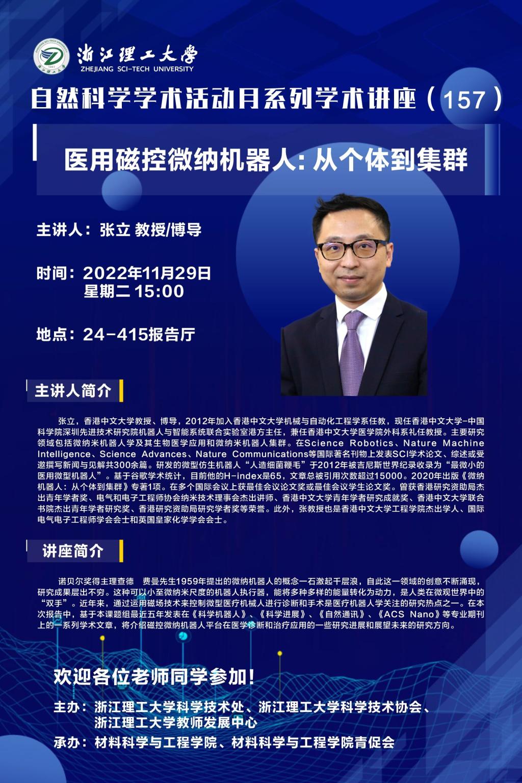 学术讲座【46】:医用磁控微纳机器人: 从个体到集群